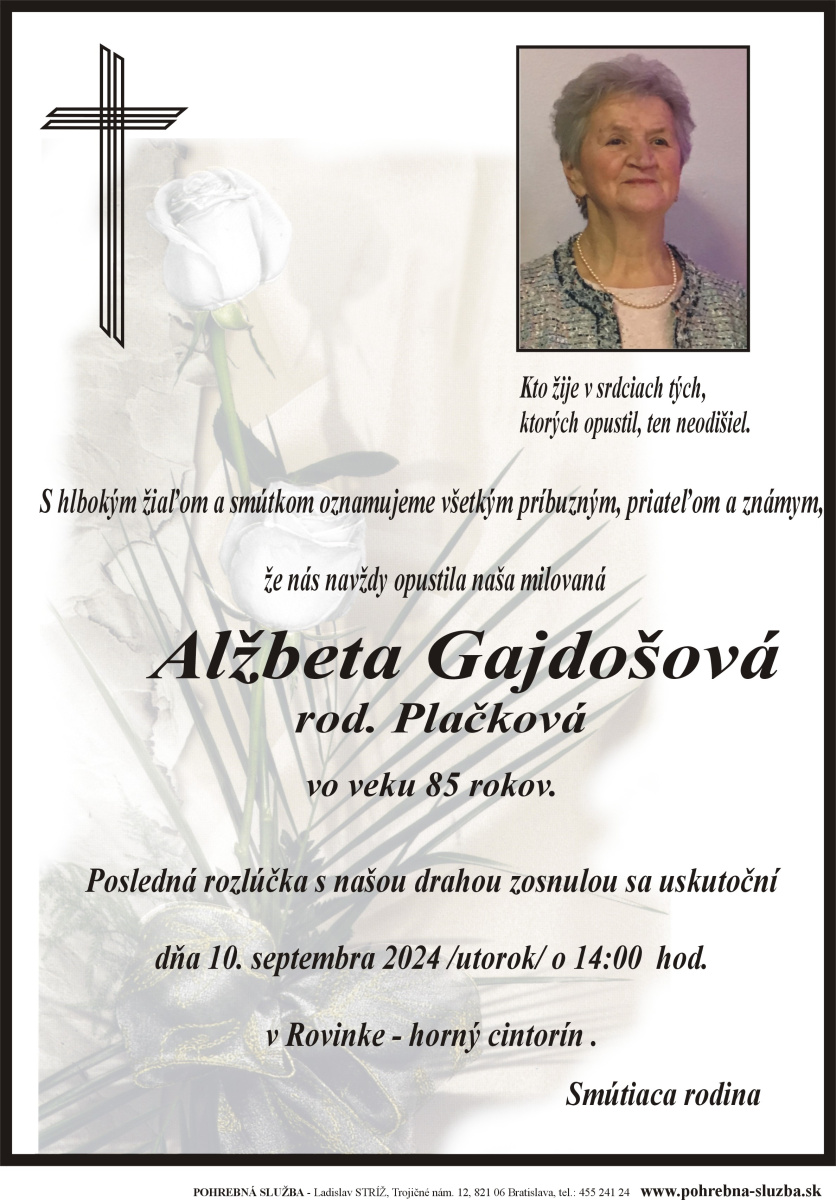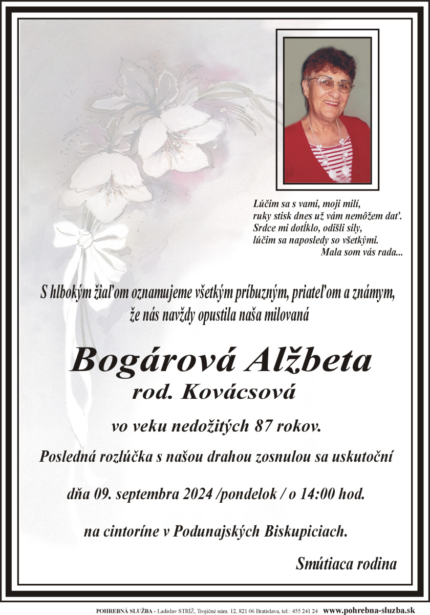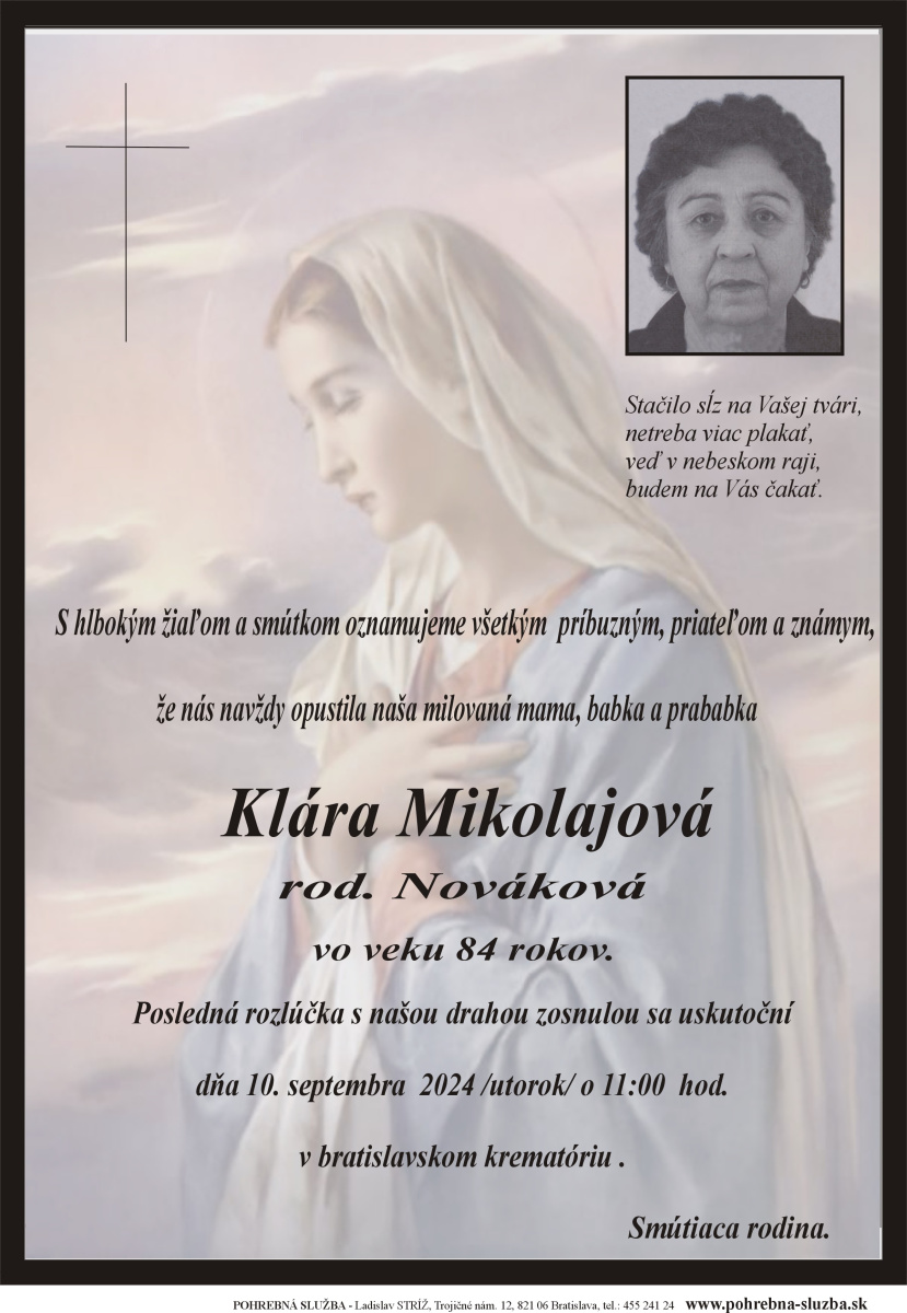 23. September 2024 - Drahomíra Tvrdoňová (68)