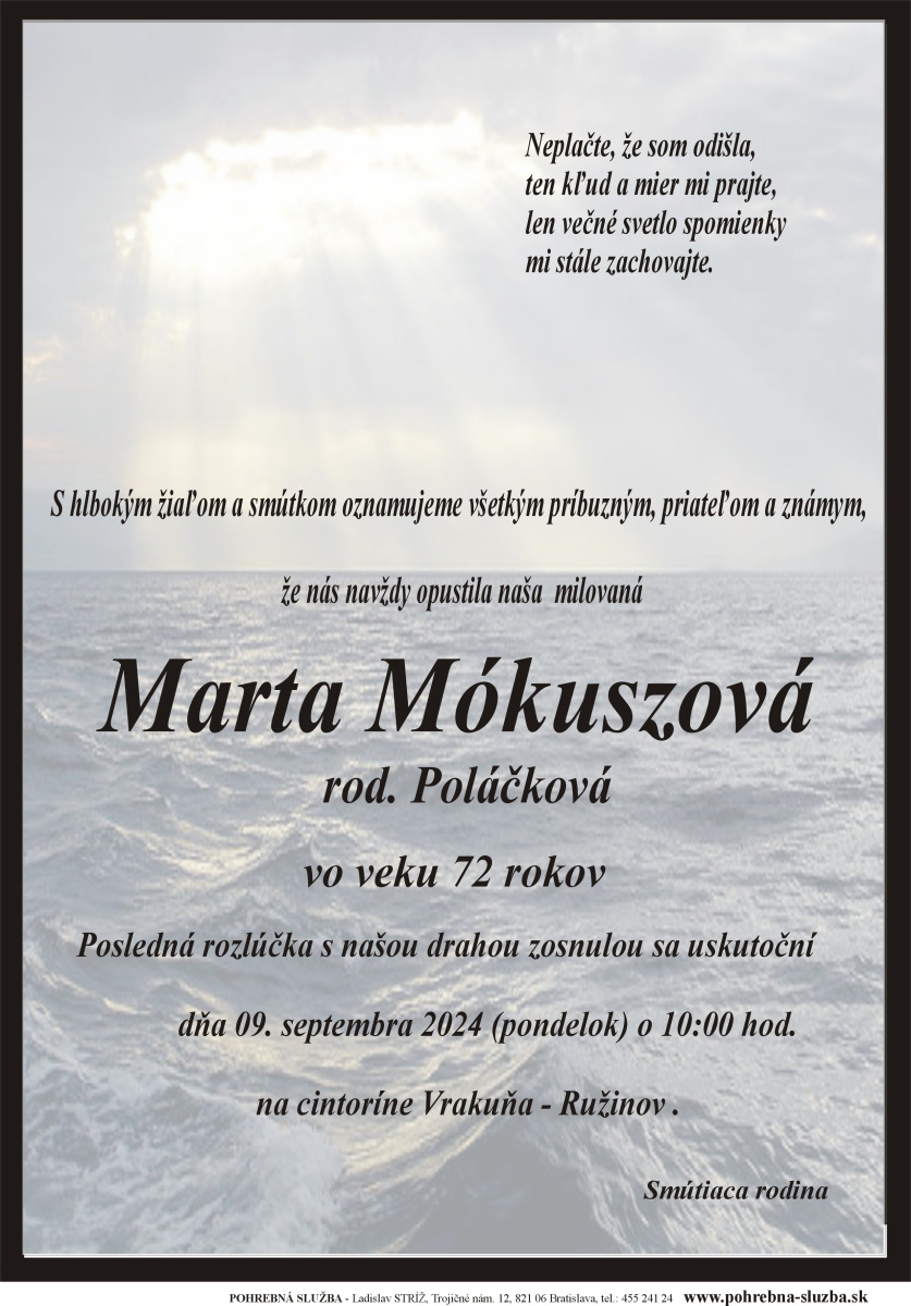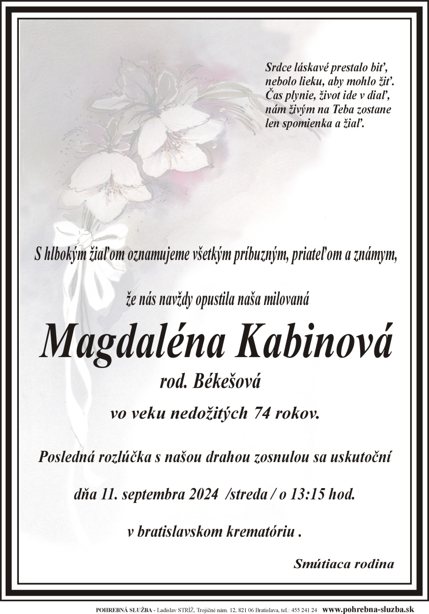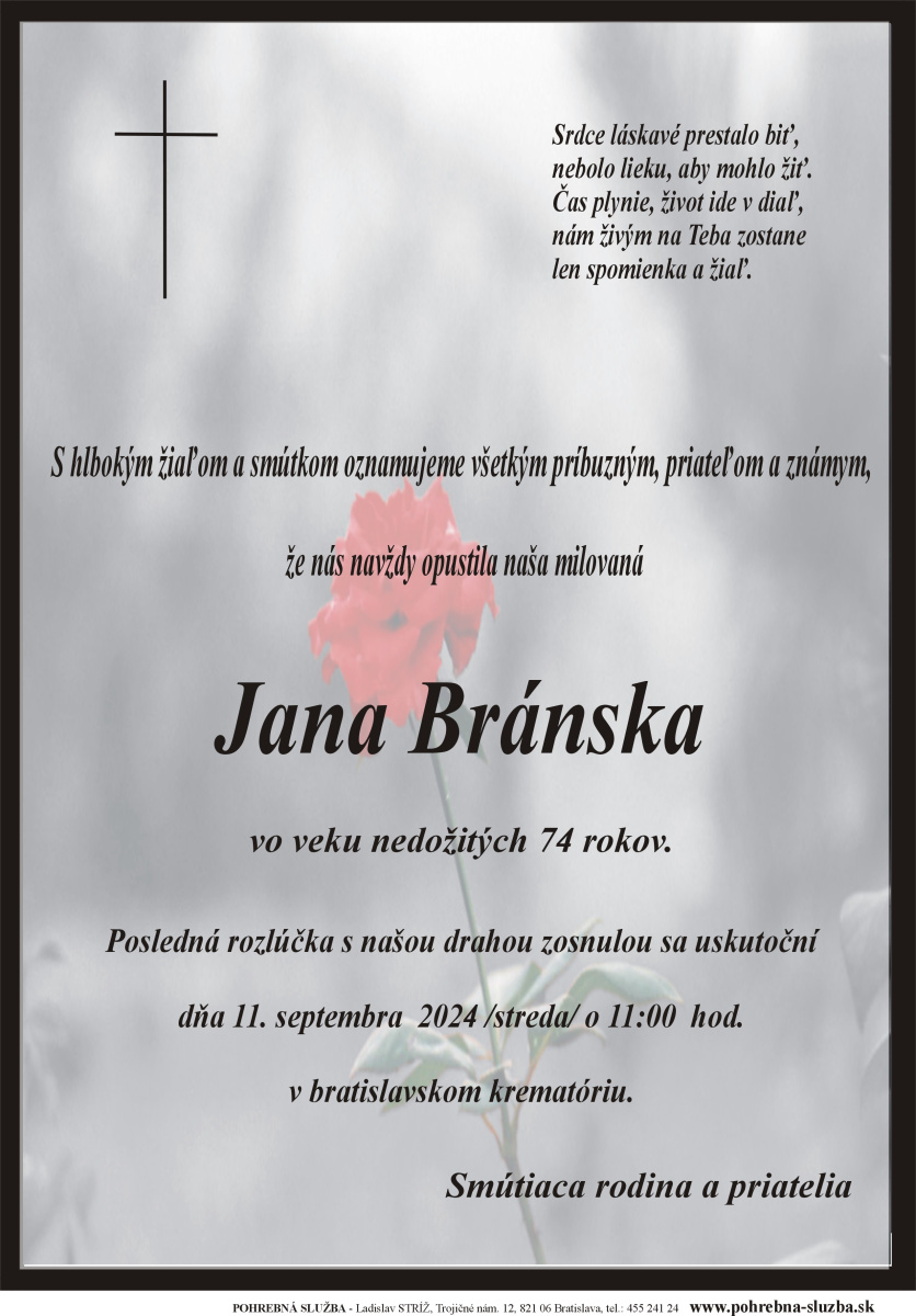 Na tejto stránke nájdete aktuálne naplánované pohreby a záznam o pohreboch (od roku 2012 po súčasnosť), ktoré boli realizované našou firmou. Ide o novinku, ktorú doteraz nemá žiadna iná súkromná pohrebná služba na Slovensku. Po kliknutí na náhľad parte sa vám zobrazí v pôvodnej veľkosti.