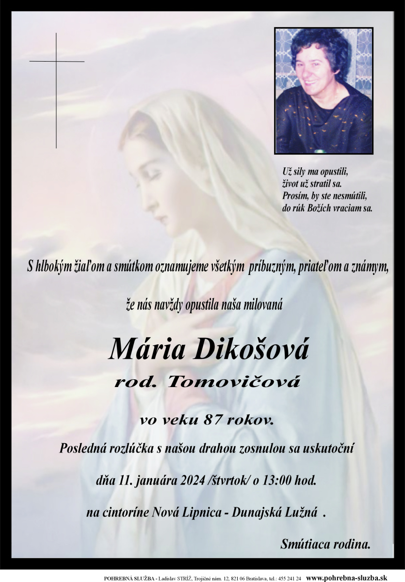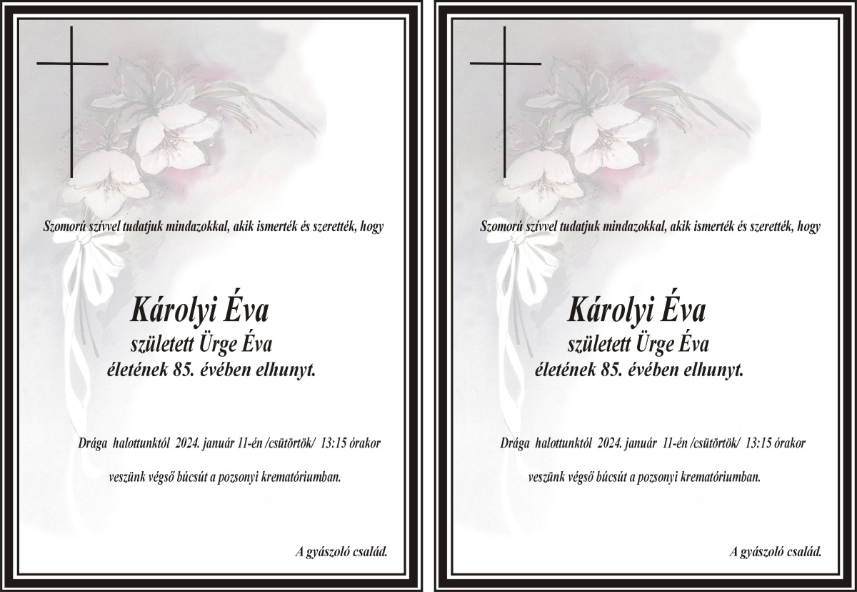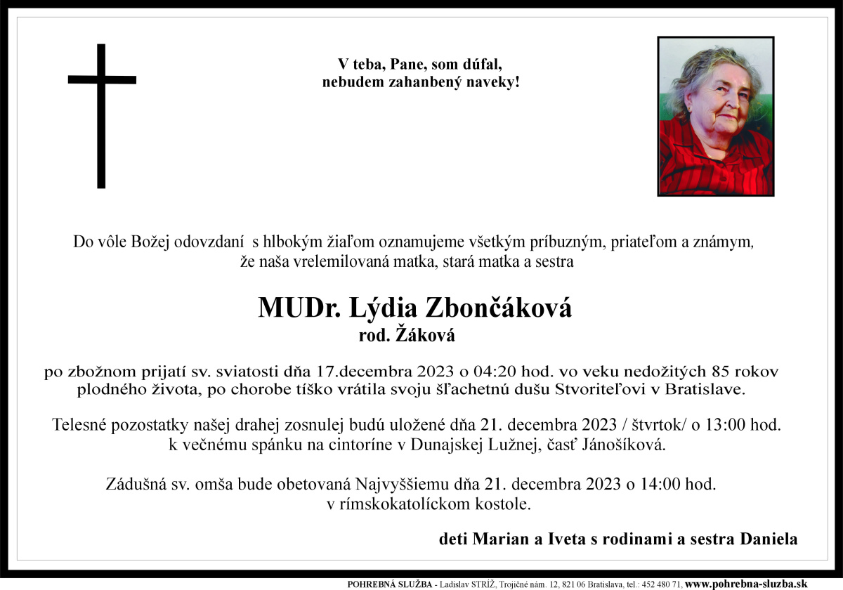 Na tejto stránke nájdete aktuálne naplánované pohreby a záznam o pohreboch (od roku 2012 po súčasnosť), ktoré boli realizované našou firmou. Ide o novinku, ktorú doteraz nemá žiadna iná súkromná pohrebná služba na Slovensku. Po kliknutí na náhľad parte sa vám zobrazí v pôvodnej veľkosti.