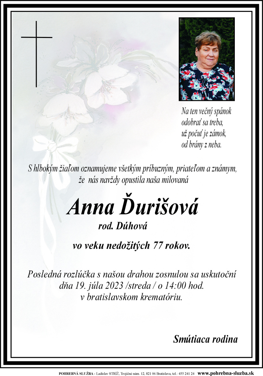 19. Júl 2023 - Anna Ďurišová (77)