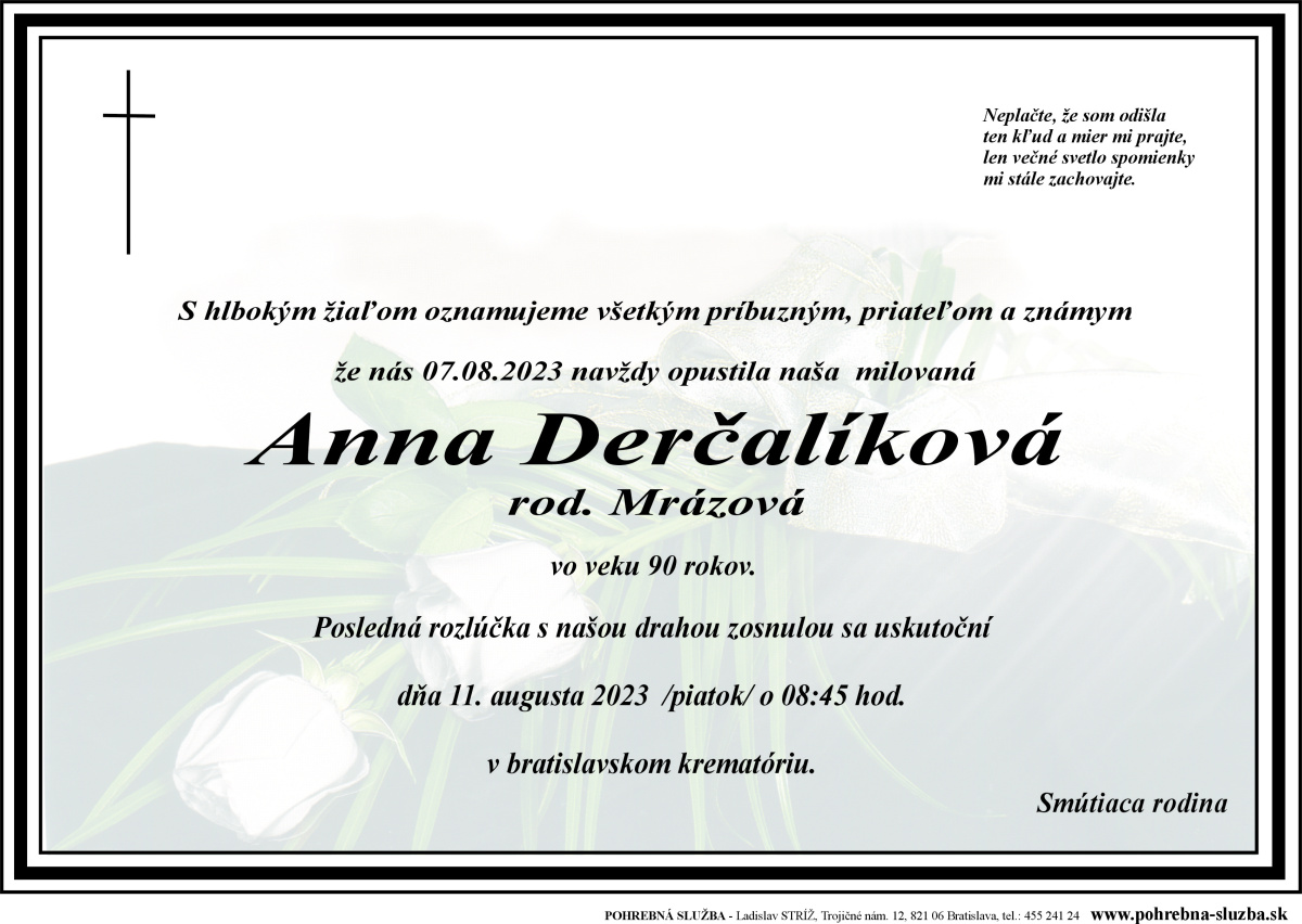 11. August 2023 - Anna Derčalíková (90)