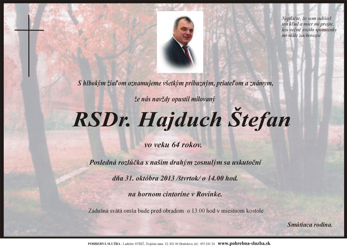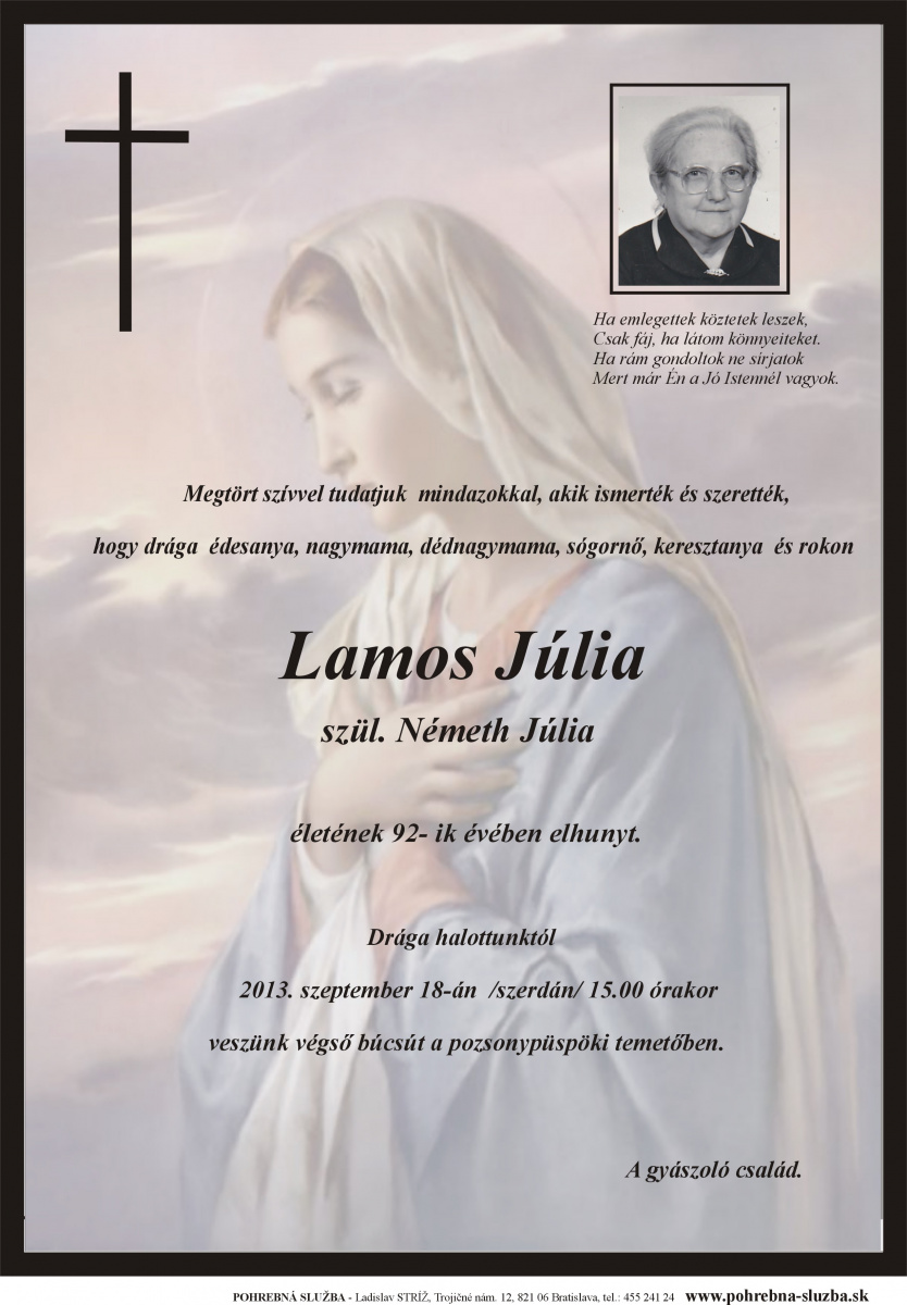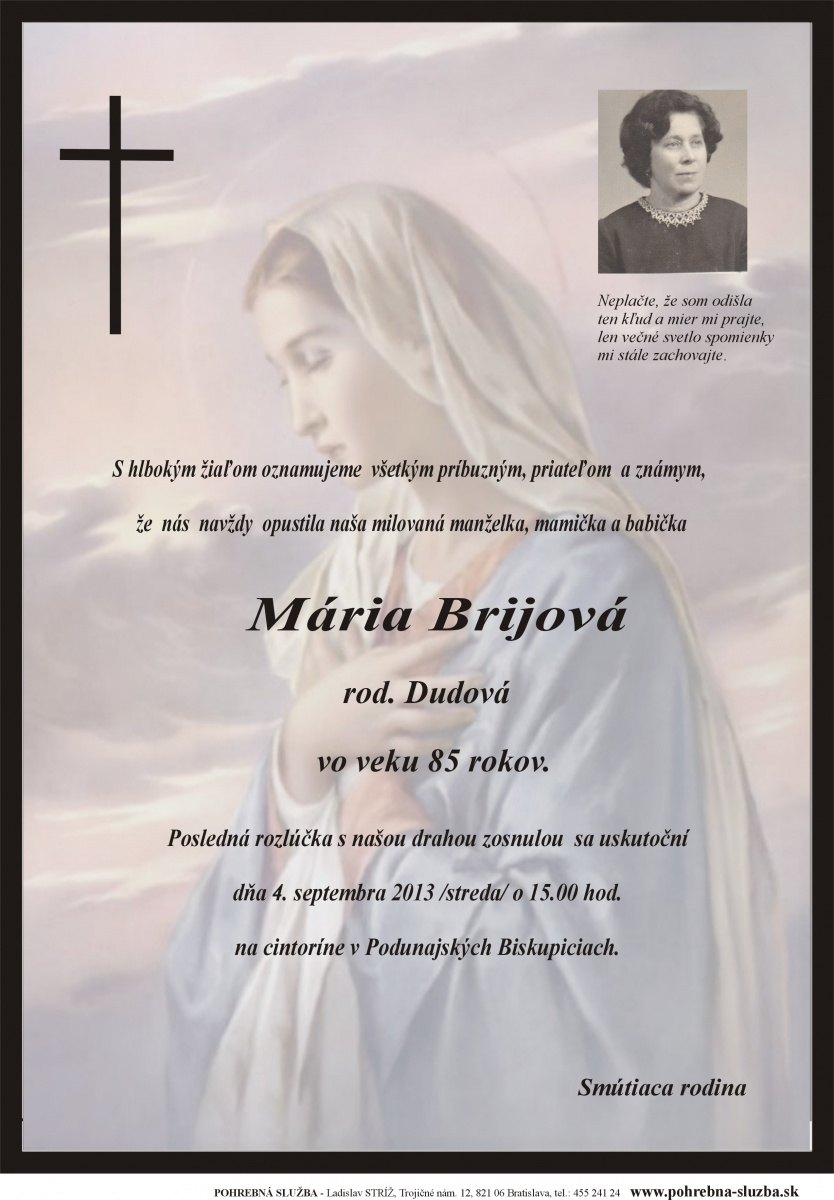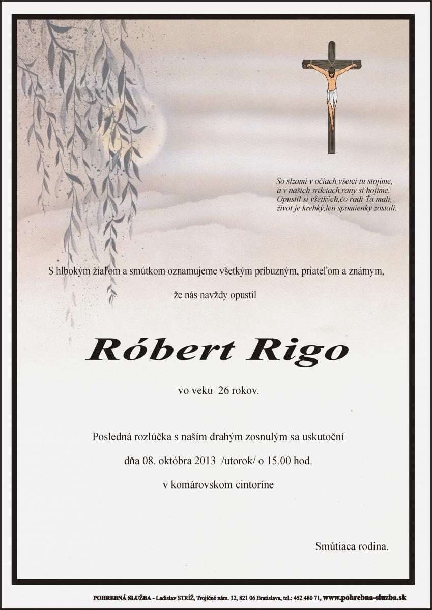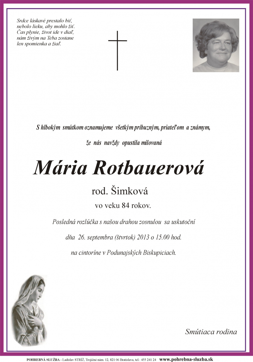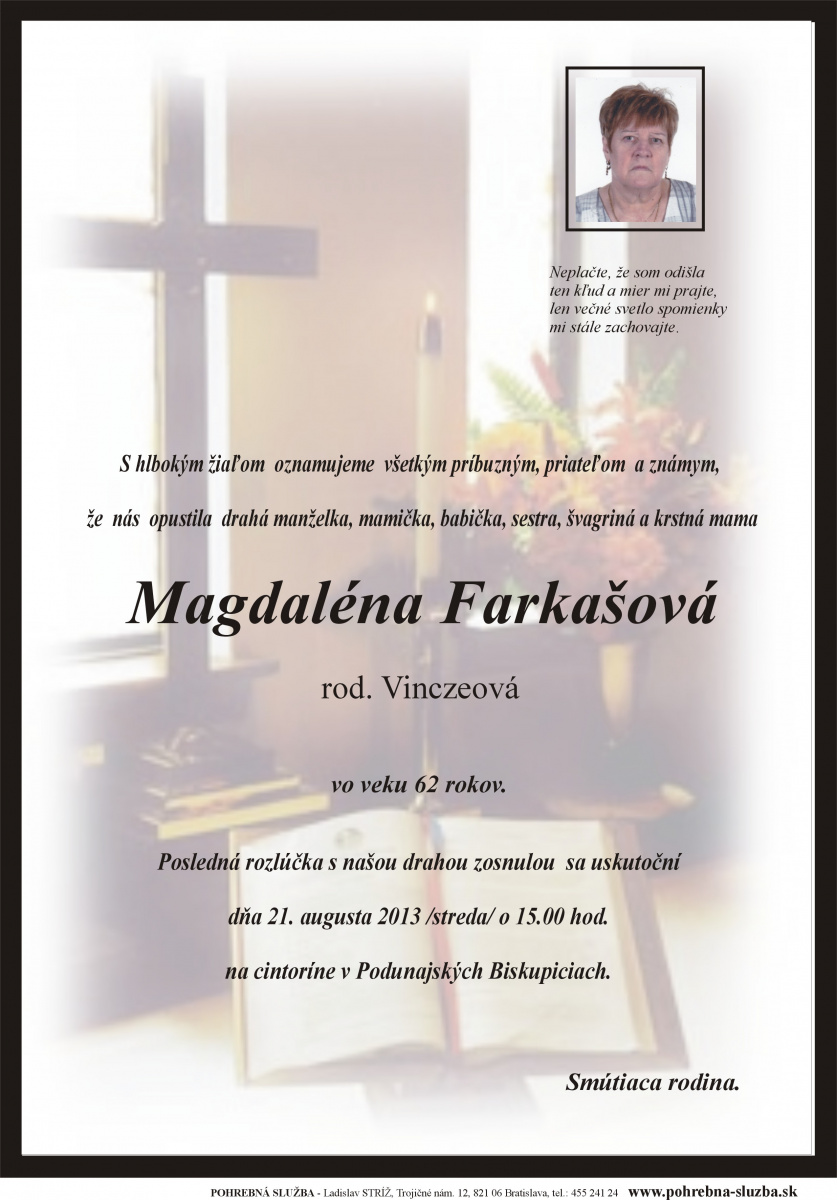 Na tejto stránke nájdete aktuálne naplánované pohreby a záznam o pohreboch (od roku 2012 po súčasnosť), ktoré boli realizované našou firmou. Ide o novinku, ktorú doteraz nemá žiadna iná súkromná pohrebná služba na Slovensku. Po kliknutí na náhľad parte sa vám zobrazí v pôvodnej veľkosti.