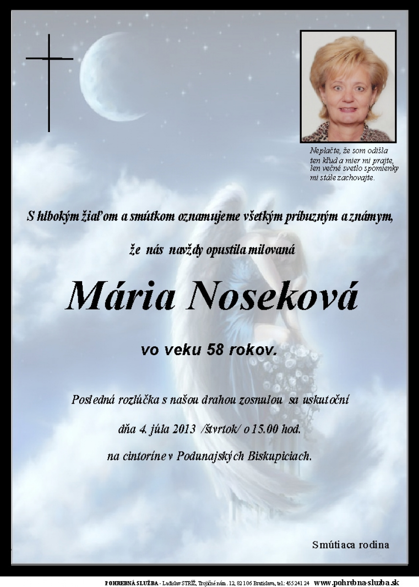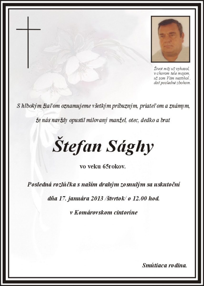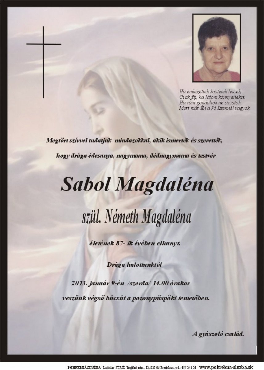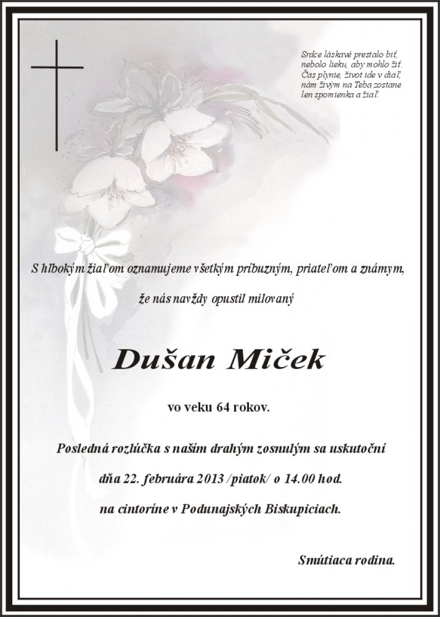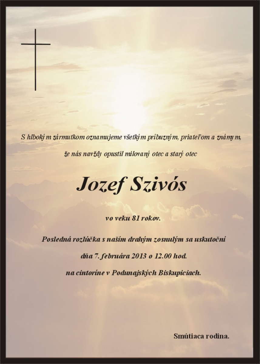 Na tejto stránke nájdete aktuálne naplánované pohreby a záznam o pohreboch (od roku 2012 po súčasnosť), ktoré boli realizované našou firmou. Ide o novinku, ktorú doteraz nemá žiadna iná súkromná pohrebná služba na Slovensku. Po kliknutí na náhľad parte sa vám zobrazí v pôvodnej veľkosti.